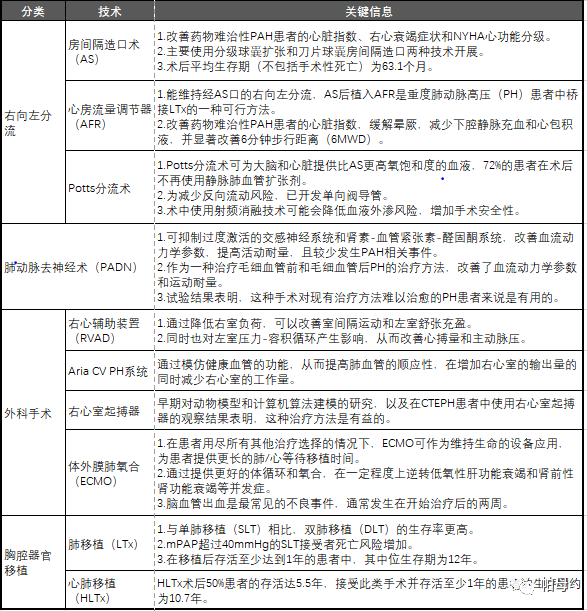 总的来说,对于PAH的治疗,需要使用药物、介入治疗和外科手术的多学科疗法。LTx和HLTx是对其他治疗均无效患者的最终手术疗法,而AS和Potts分流术可作为LTx的桥接工具。VA-ECMO是重症PH患者术中心肺支持和围术期左室调节治疗的最终桥接方法。作为潜在的治疗新技术,PADN和RVAD可以确保上述PH患者的非移植生存,但仍需高质量随机对照试验的进一步证实。